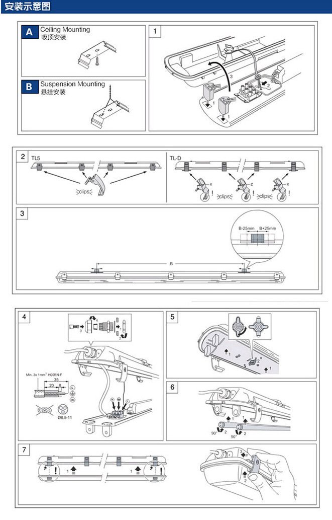 三防灯具安装:
