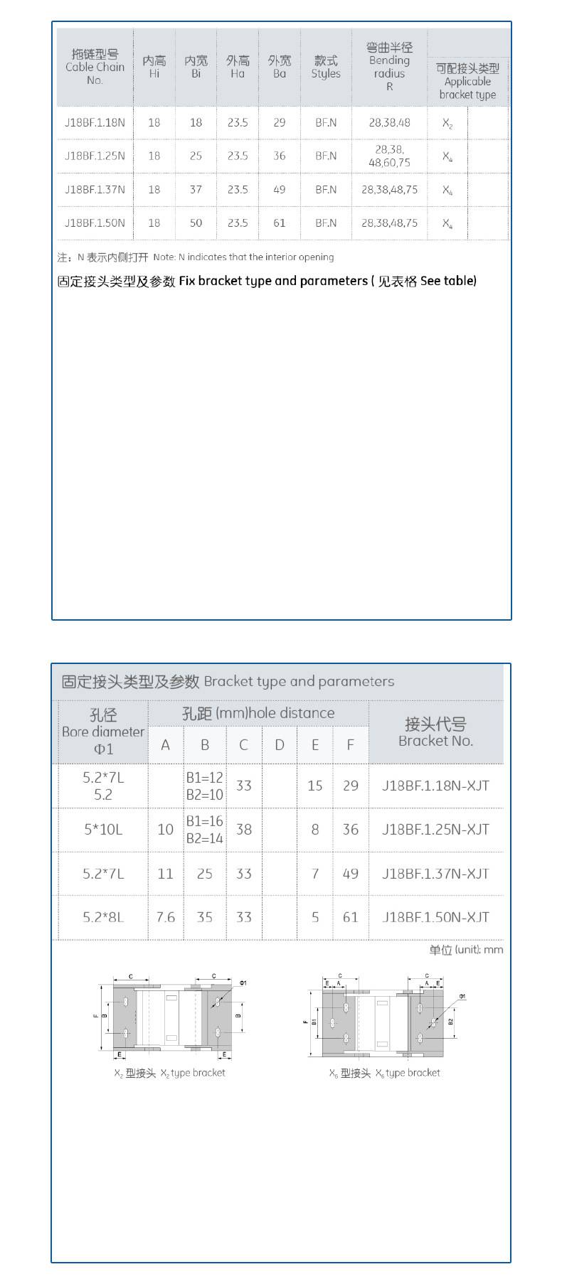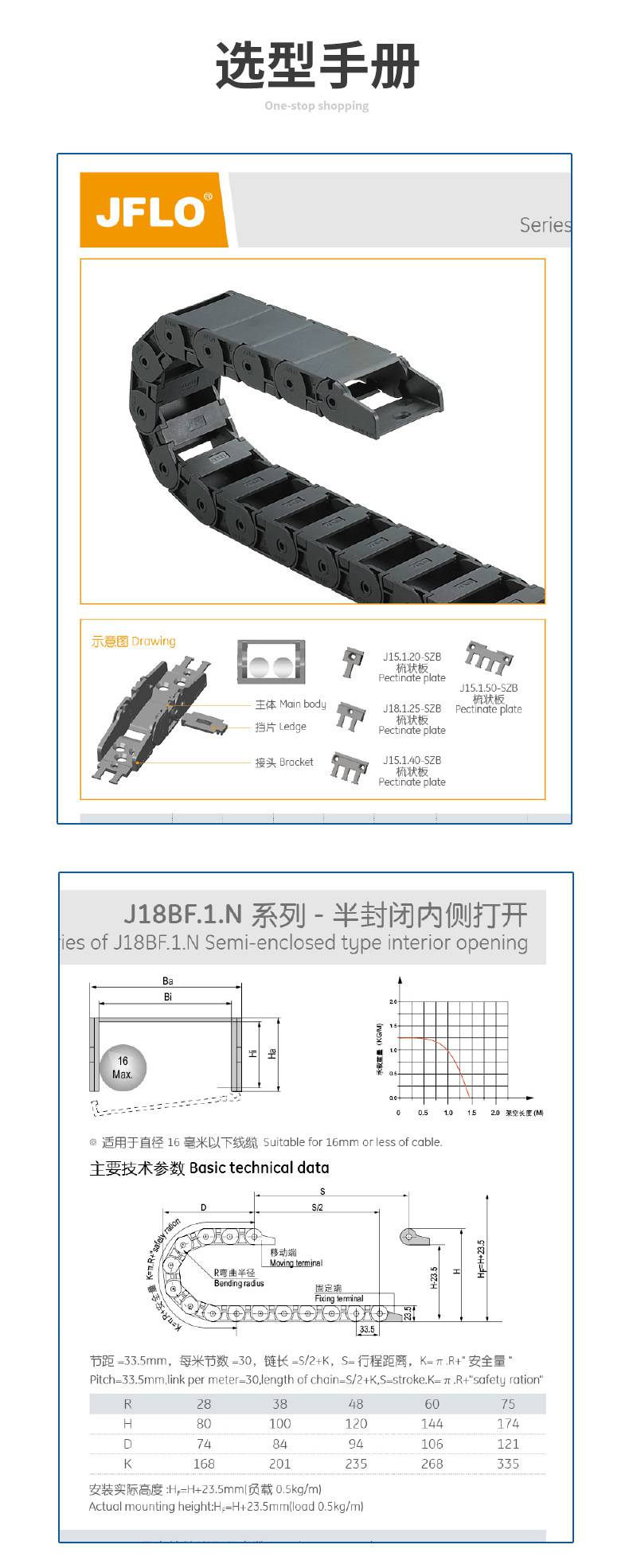 金福隆半封闭内开拖链J18BF.1.37R48轻便型传动链条