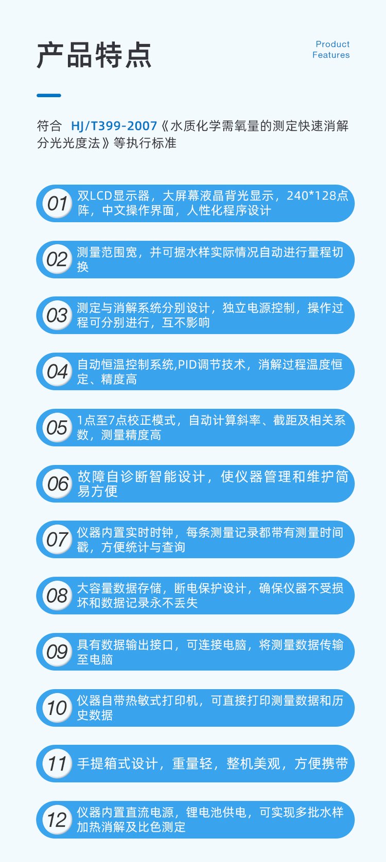 产品特性 | 检测仪 | ||