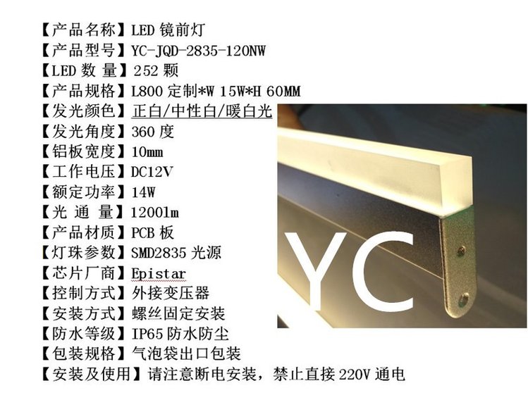 酒店客房浴室镜前灯led亚克力线条灯24V防水工艺