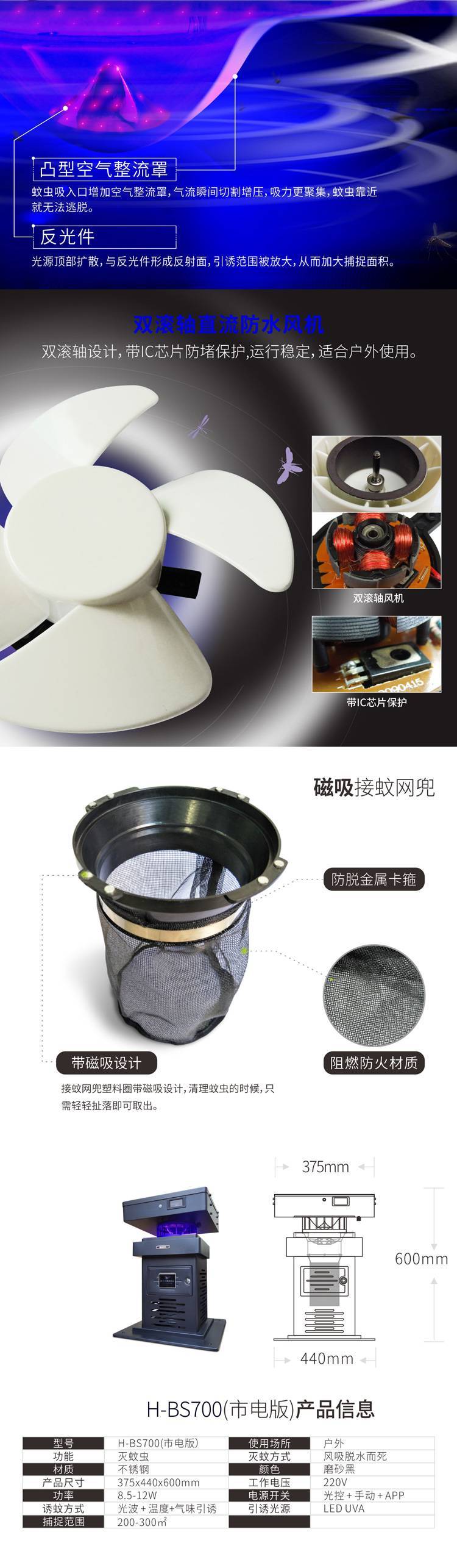 适用于别墅、花园、小区户外环保灭蚊虫。使用方便,智能设计。