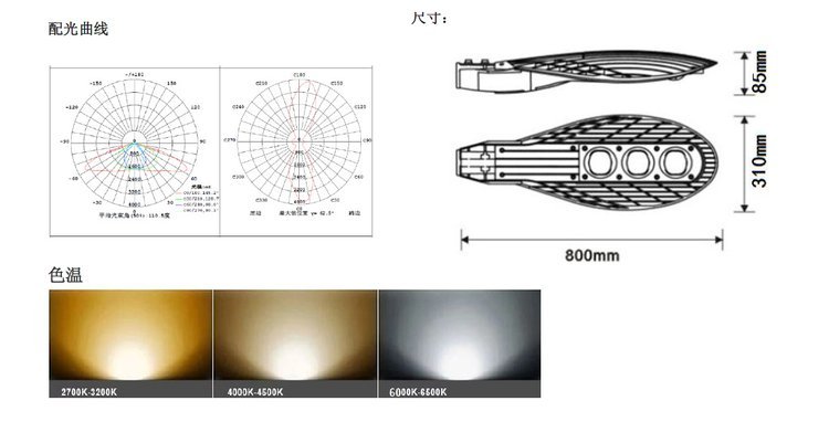 特色服务 | 厂价直销高光效高流明光学多角度配光高效散热抗雷击LED路灯150W | ||