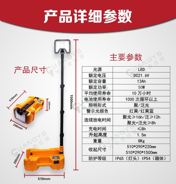 外形尺寸 (升起状态) | 510×290×1500mm | ||