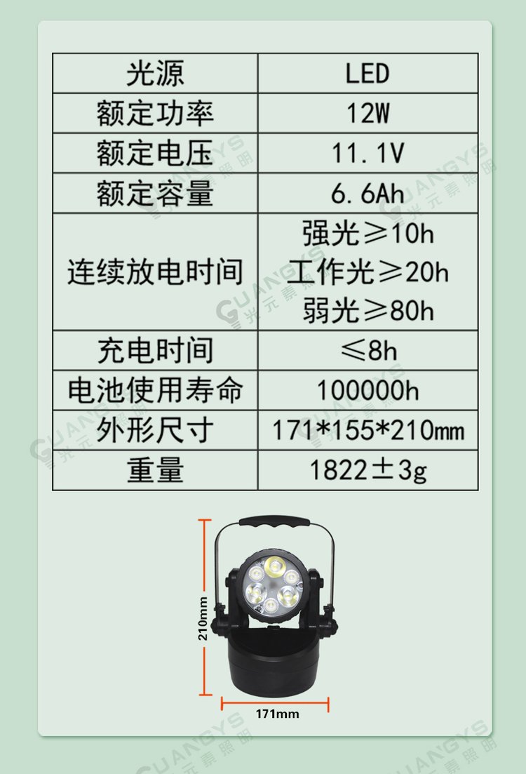 工作光使用时间 | 20h | ||