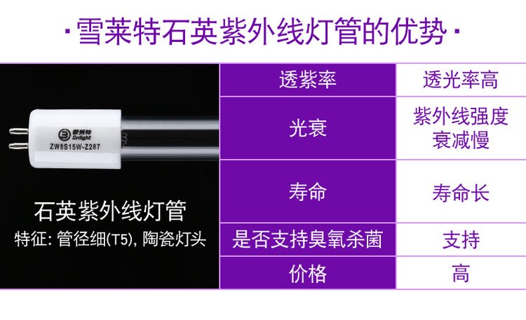 电极和石英玻管经特殊处理,可延长灯的寿命,更好的维持紫外线输