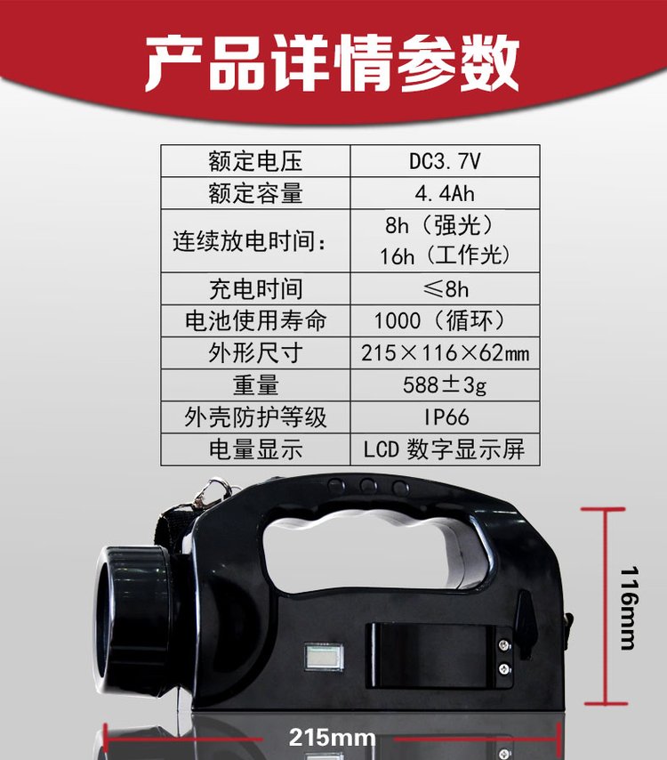 连续照明时间 | 强光≥8h 工作光≥16h | ||