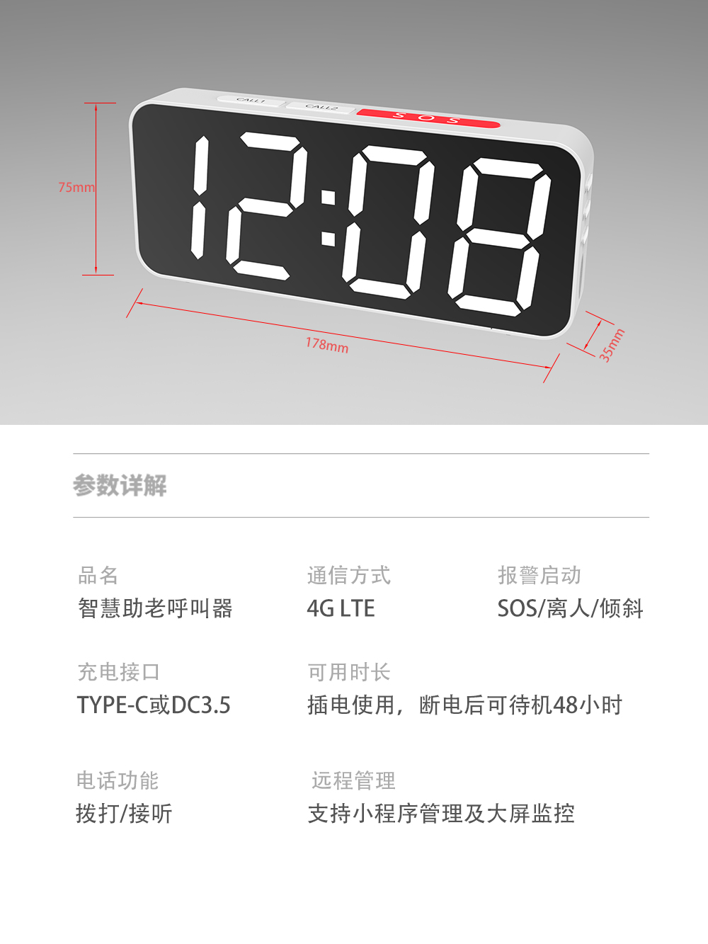智慧助老一键通SOS求助呼叫系统4G离人报警大屏监控独居老人呼叫
