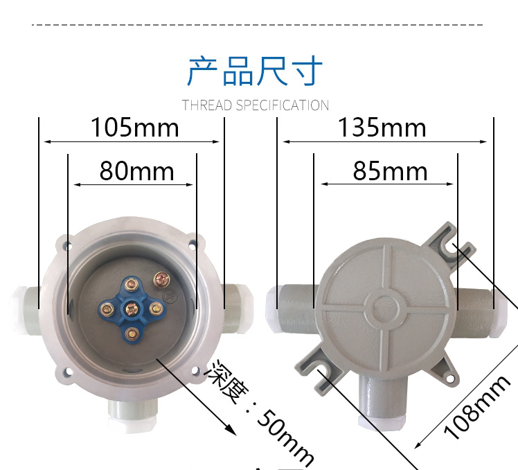 IIC级防爆吊灯盒G3/4铝合金外壳IP65级灯头盒 保护方式 | 隔爆型 | ||