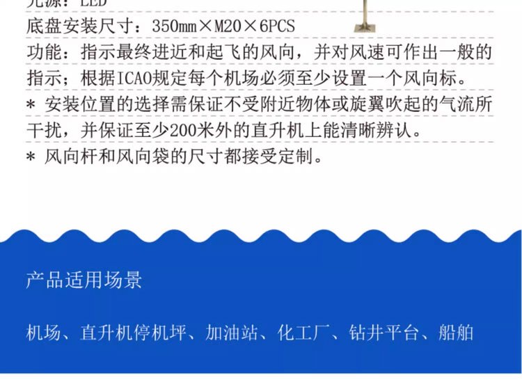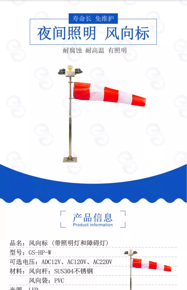 GS-HP-W风向标2米带障碍灯风向袋红白相间3.6米长助航灯光
