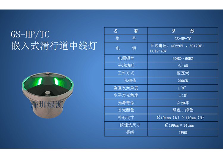 货号 | GS-HP-TC嵌入式滑行道中线灯 |