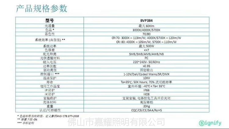 全面的功率覆盖和优异的光效表现,500W 60KLM,120LM/W 4000K