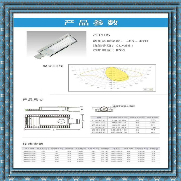 上海亚明LED道路照明灯ZD105技术参数:
