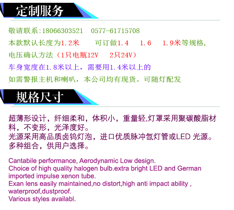 一般用在机械设备等开发。一般情况下,提供多样的长度的产品的,有灯罩组合的构造,需要时一边方向的灯罩可以组合复合颜色。此外,还可以根据光源形式的不同,分为:1灯泡旋转灯;2LED闪光灯;3氙气灯管频闪灯,其中LED闪光形式的是灯泡旋转形式的升级版,使用寿命更长,更节能,更环保