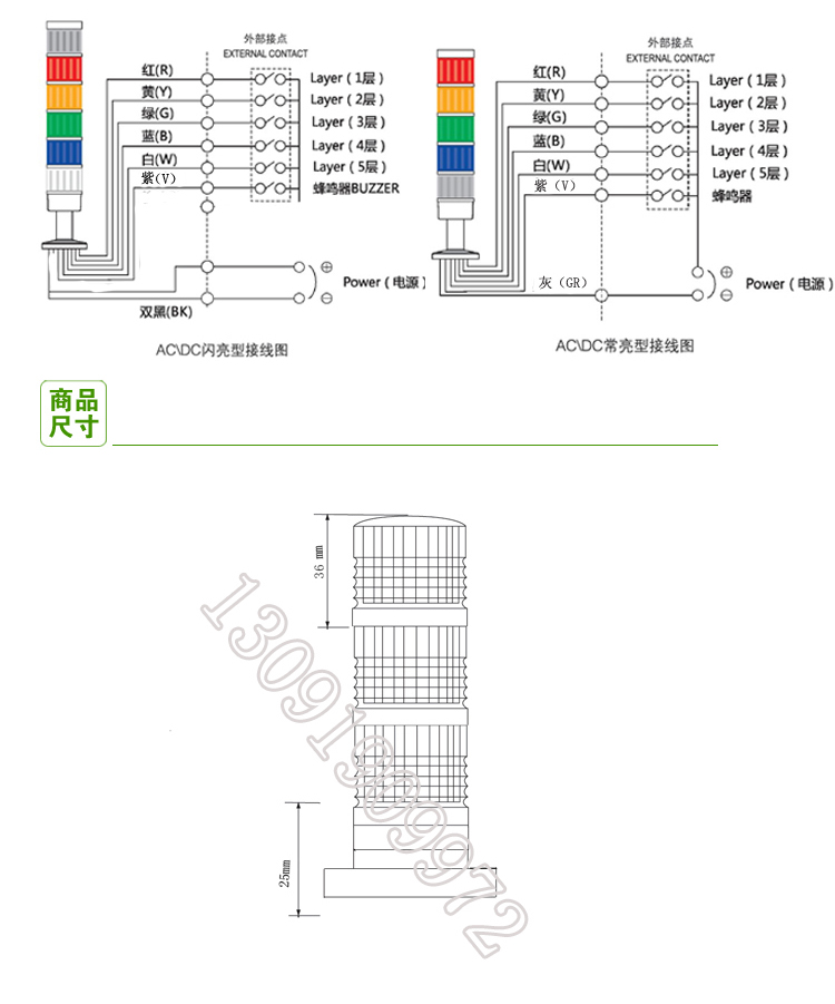 936D-W3J多层小型警示灯 三色设备指示灯 机床信号灯12V24伏
