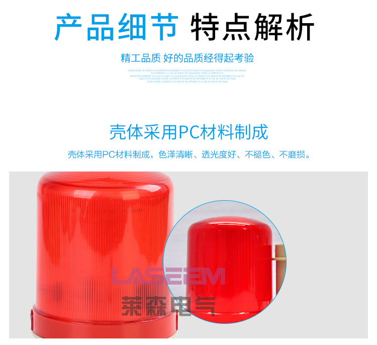 5、适于用恶劣环境下正常工作警示灯通常是用在机械设备等开发。一般情况下,用处可以提供多样的长度的产品的,有灯罩组合的构造,需要时一边方向的灯罩可以组合复合颜色。此外,还可以根据光源形式的不同,分为:1灯泡旋转灯;2LED闪光灯;3氙气灯管频闪灯,其中LED闪光形式的是灯泡旋转形式的升级版,使用寿命更长,更节能,更环保!