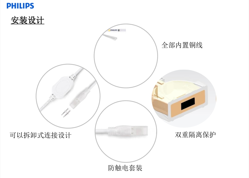 飞利浦虹韵LED高压灯带 220V 210lm 350lm 600lm 50米一