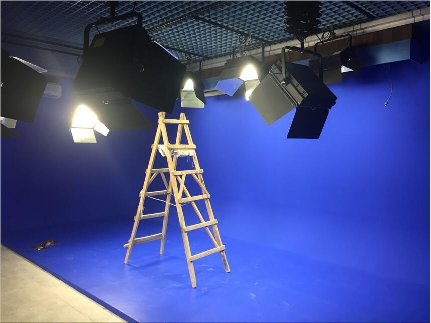 虚拟演播室实际空间通常都较小,布光时要先对前景物体进行布光,打前景的光线也将有部分投射到蓝幕上。在蓝幕已有一定光线的基础上,仅对蓝箱增加一些灯光,就可使