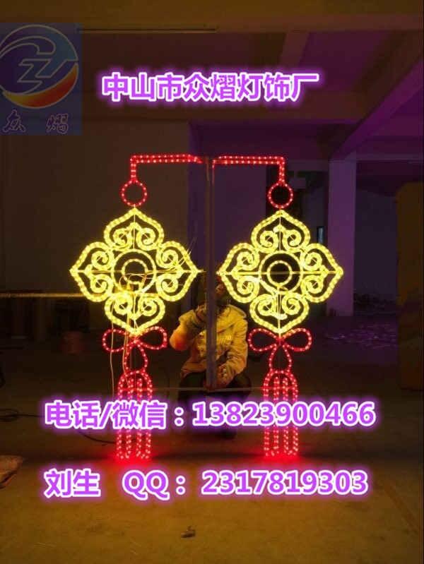 LED中国结灯通过特殊处理组成的LED中国结产品,适用于贵宾光临、节日喜庆时刻,添加于城市主要干道的路灯灯杆上,既不需要增加路灯设施,又可以使用,可为整个城市增添最具中国特色的节日喜庆气氛,使用LED中国结灯装饰道路工期短安装方便。直挂式型就是采用箍圈方式安装方法把LED中国结灯直接添加在路灯灯杆上的专用产品。使用这产品装饰道路免去基础及灯杆等工程。