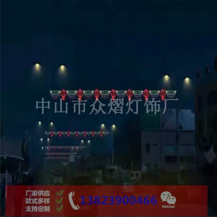 工艺铁架(防辐射防绣处理)单颗功率: 0.08~0.12W额定功率: 15~200W电压:220V每套最佳米数:15-25米(可根据具体情况而定每套的长度)颜色:黄 红 绿 蓝 白款色:多款选择:如:中国结款过街灯、灯笼款过街灯、双兜帘款过街灯、花朵款过街灯、字体款过街灯、动物款过街灯、植物款过街灯、五角星灯款过灯、雪花灯款过街灯、砖石款过街灯、单兜帘过街灯等等,欢迎广大客户根据实际情况来图定做!尺寸:1.5-3M光源:专制的彩虹管/双向发光灯串/C7光源发光角度:360度发光光源:高亮度LED防水等级:IP67控制方式:无试用寿命:50000H包装:中性包装+木箱运输方式:货运、空运、快递关于物流:默认德邦关于服务:质保一年 用途:公园亮化工程、旅游景点、居民小区、公园、草坪、庭院照明、步行街、广场夜景照明、建筑物主体装饰桥梁、道路照明。备注:本产品是成品,货到只需要简单安装即可LED路灯杆造型灯名称:LED路灯杆造型灯 凤凰造型灯 中国结造型灯 灯笼造型灯 雪花造型灯 希望之星造型灯 荷花造型灯简介:LED灯杆造型,是用LED产品为普通灯杆做造型,可挂装于灯杆上,夜间同路灯一起点亮,用于城市街道的LED夜景亮化产品,将LED双面串灯创造性的运用到灯杆艺术景观,巧妙的借助于灯杆载体,使照明与景观浑然一体、光色与文化和谐相融,让街道呈现出开阔而悠扬,美丽而豪壮的现代城市氛围。