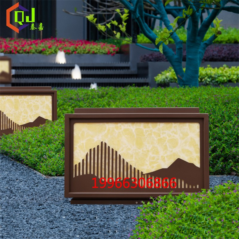 新中式仿云石柱头灯工厂供应售楼部太阳能柱子灯
