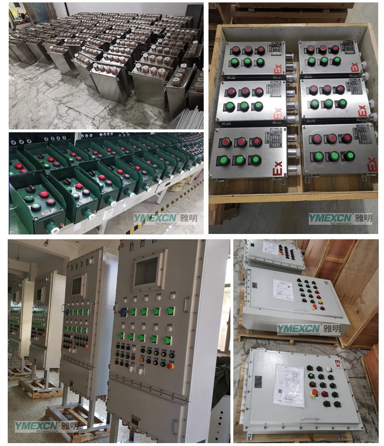 防爆配电箱总开关配置:C65或CM1支路开关配置:2P或3P C65系列开关以及各种带漏电保护功能。CM1等塑料外壳式断路器母线腔配置:内部设有母线和防爆指示灯。接线腔配置:接线腔设置的接线端子为TC系列或UK系列。引入口配置: 引入装置规格为G1/2″-G3″,并可根据要求进行特制。