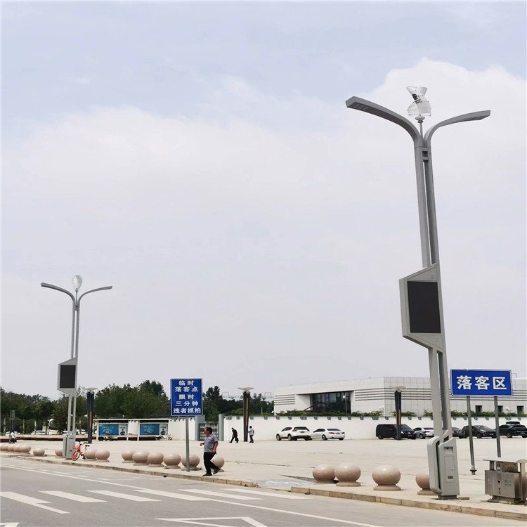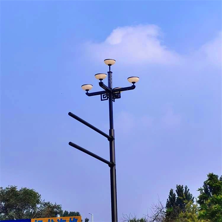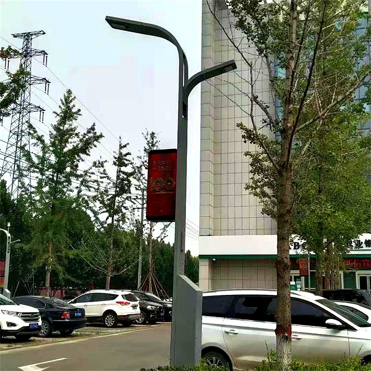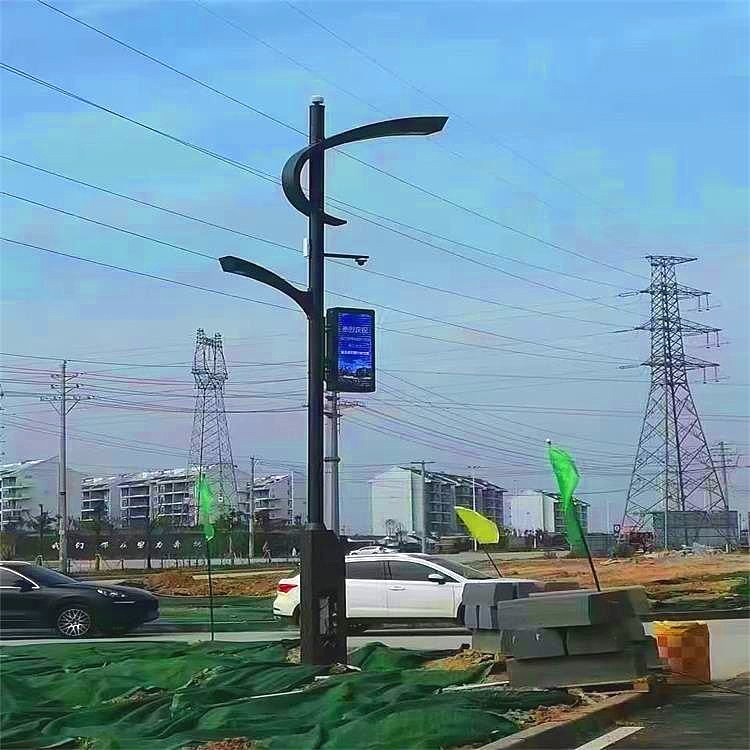综合杆就是常说的多杆合一,就是经过科技创新,综合设计,以一定的技术手段,将监控杆、交通信号杆、通信杆、交通标识牌杆、路灯杆等具有城市服务管理作用的杆体整合在以路灯杆为基础的杆体上。该综合杆还可以配合智慧城市建设集成WIFI 基站、5G基站、监控、广播、显示屏、PM 2 .5环境监测、紧急呼叫、充电桩等应用,成为智慧照明、智慧城市建设的重要载体,也是城市精细化管理和绿色低碳发展的重要体现,大大提升城市管理的精细化水平,给广大市民提供智慧生活、智慧出行的便利。