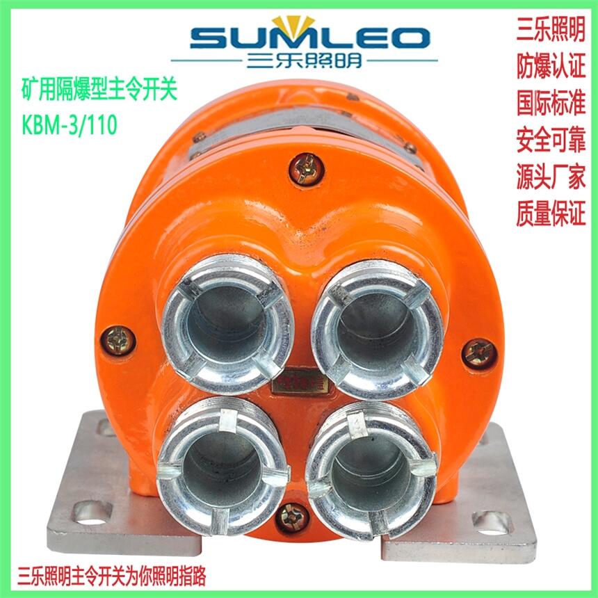 KBM-3/110矿用隔爆型主令开关(以下简称为主令开关)是作为防爆特殊型蓄电池电机车、无轨胶轮上的前后照明灯和信号灯线路中作为转换通断之用,以实现电机车往返运行时前有照明灯后有红灯。