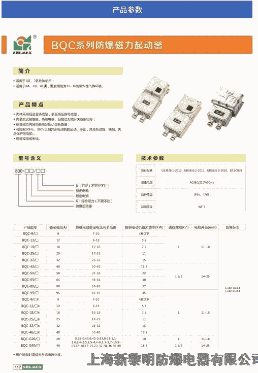 上海新黎明防爆磁力启动器BQC-16A 380电磁启动器国标厂销