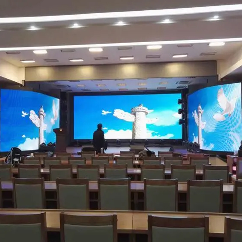 2、大尺寸展示:LED显示屏可以根据需求定制尺寸,并且可以拼接成较大的屏幕。这使得在会议室中可以实现大面积的内容展示,无论是展示大幅图片、大字幕还是多窗口显示,都能够让参会人员轻松看清。