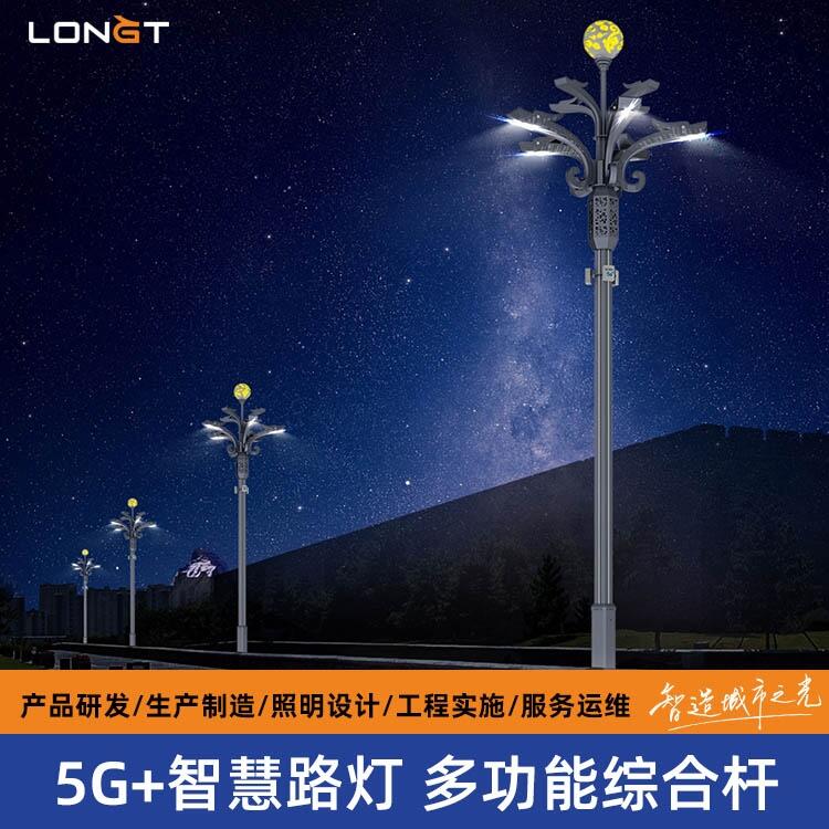 多杆合一路灯在城市道路照明中有着广泛的应用。传统的城市道路两侧安装了许多种类的杆件,包括道路照明灯杆、交通标志标牌杆、信号灯杆、摄像杆、监控杆、路名牌杆、公共服务设施指示标志牌杆、电车杆、公交站牌杆、停车诱导指示牌杆等设施。这些形状各异的杆件占据了城市大量的空间和土地资源,且功能单一,导致道路空间资源紧张。多杆合一的智慧灯杆可以在传统照明功能的基础上,集智慧照明、道路监测、交通诱导、5G基站挂载预留、信息发布、城市广播、智慧监控、安全预警、环境监测、降温除霾、智慧求助、智慧充电、智慧电控、智慧防疫、智慧拓展、网络覆盖等多功能于一体。