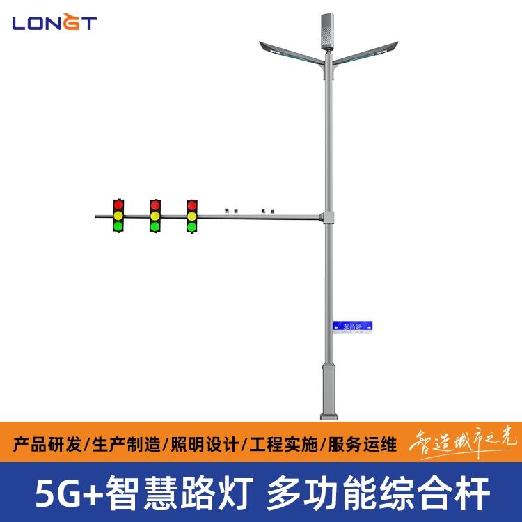 多杆合一路灯在城市道路照明中有着广泛的应用。传统的城市道路两侧安装了许多种类的杆件,包括道路照明灯杆、交通标志标牌杆、信号灯杆、摄像杆、监控杆、路名牌杆、公共服务设施指示标志牌杆、电车杆、公交站牌杆、停车诱导指示牌杆等设施。这些形状各异的杆件占据了城市大量的空间和土地资源,且功能单一,导致道路空间资源紧张。多杆合一的智慧灯杆可以在传统照明功能的基础上,集智慧照明、道路监测、交通诱导、5G基站挂载预留、信息发布、城市广播、智慧监控、安全预警、环境监测、降温除霾、智慧求助、智慧充电、智慧电控、智慧防疫、智慧拓展、网络覆盖等多功能于一体。