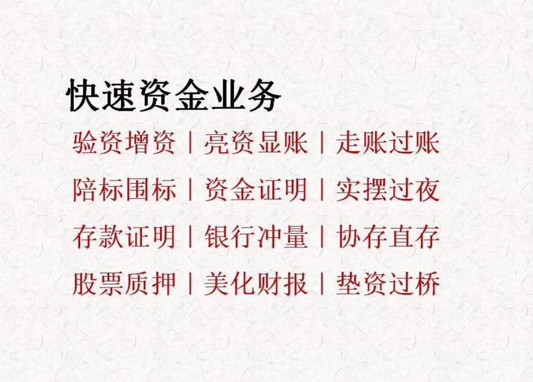 我公司承接全国个人及企业长短期疑难摆账显账、工程亮资、银行存款证明(资金证明)、银行贴息存款冲量(月末/季末/年末)、银行日均存款、阳光直存、结构性存款、协议存款、企业增资验资(可出验资报告)、上市公司审计过账、上市公司美化财务报表、上市公司资金过桥、打余额小票和企业活期存款明细账等大额资金业务。详情咨询我或者来公司面谈。