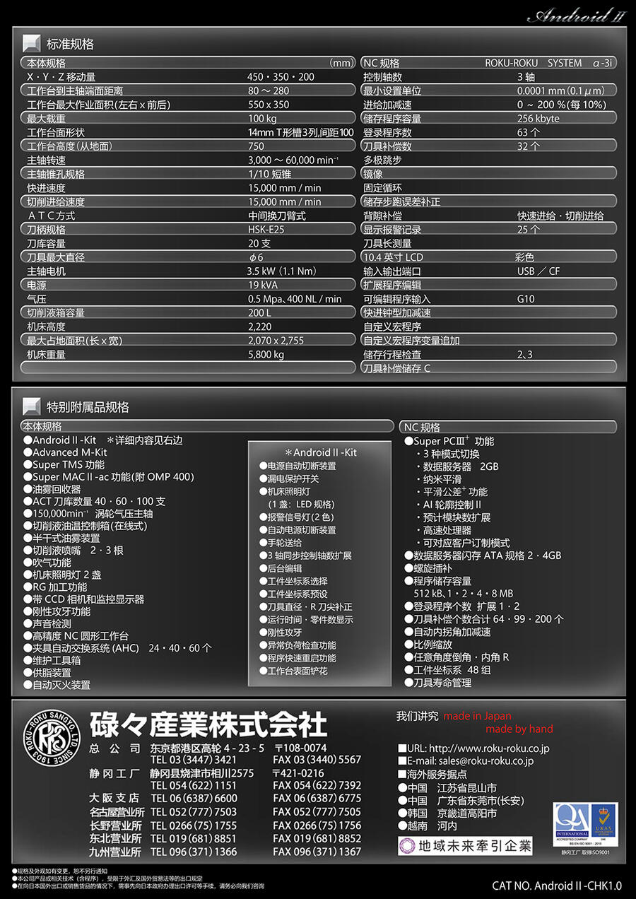 ROKU-ROKU碌碌产业株式会社为日本高精密数控机床制造商之一,与日本MITSUI SEIKI三井精机,YASDA安田齐名,合称日本高精密加工中心领域三剑客!