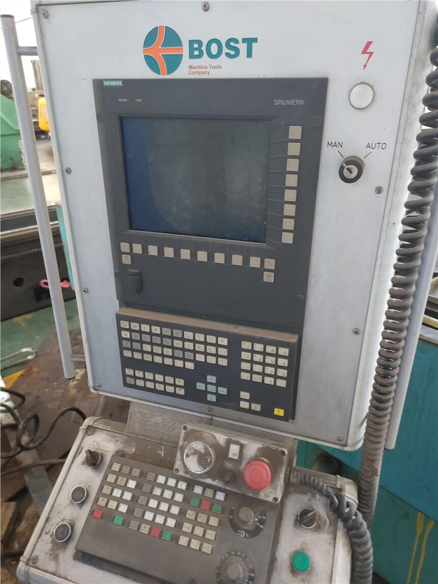 西班牙博斯特1.6米立式车削加工中心 型号BOST VTL16C-1400 2011年安装未用 车削直径1600mm 卡盘直径 1400 mm 加工高度 1500mm 移动横梁 滑枕垂直行程(“Z”) 1200mm 滑枕截面尺寸 250 x 250 mm 西门子840D 数控 主电机功率(30 30) 60 Kw 工作台带有独立4爪卡盘 保护罩符合EC标准 冷却系统 找平元件 车削高度 1500mm Z 轴 1.200mm 车削高度1500毫米, Z 轴行程1200毫米 双向C轴驱动 滑枕内置铣削主轴 刀具内冷20把, 电箱空调 铣削主轴功率22 kW, 2.500 rpm, 15 position tool changer配置21位刀库, 包括: 12把刀具刀夹位置为ISO50 车刀刀夹位置为8个。