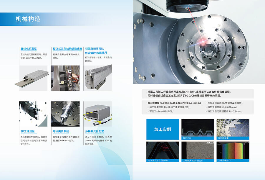 加工刀具轮廓无限制,PCD刃口崩缺程度<0.005mm,可加工断屑槽,刀具尺寸精度高,没有热受损,五轴设备,刃口一次加工成型,加工效率高,环境友好。