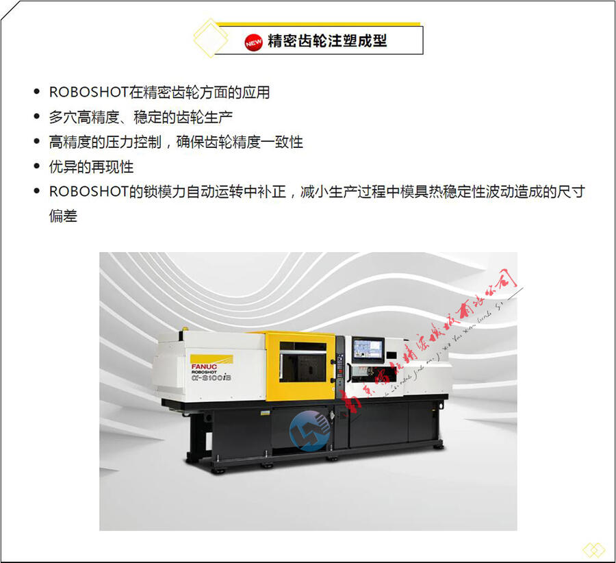 1984年世界上第一台全电动注塑机由FANUC向客户提供,自此全电动注塑机真正走入市场。FANUC ROBOSHOT拥有*进的功能、精密的控制、快的速度、低的能耗等优势,被广泛应用在精密光学、生物医药、汽车电子、精密齿轮、数码电子、食品包装、微型连接器等行业。