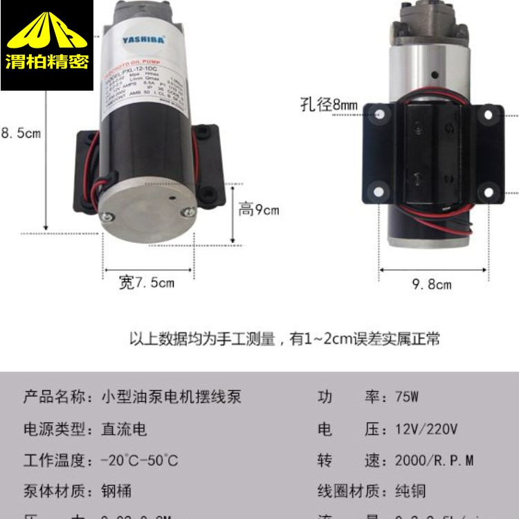 幼率:75W花压:12V/220V转速:2000/R.P.M线圈材质:纯铜量:0.2-2.5L/min流