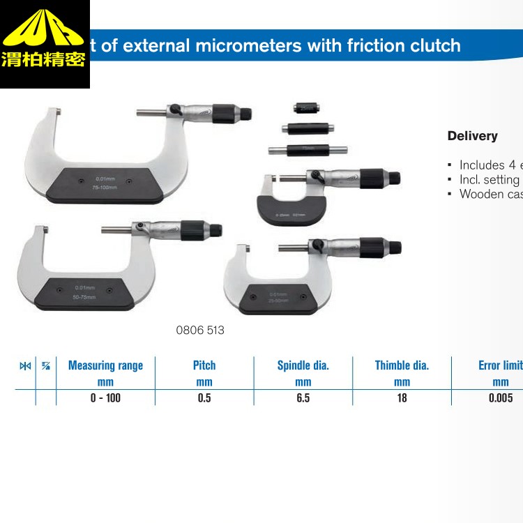 棘轮装置(Ratchet Stop):确保测量时施加恒定的压力,避免过度挤压导致误差。