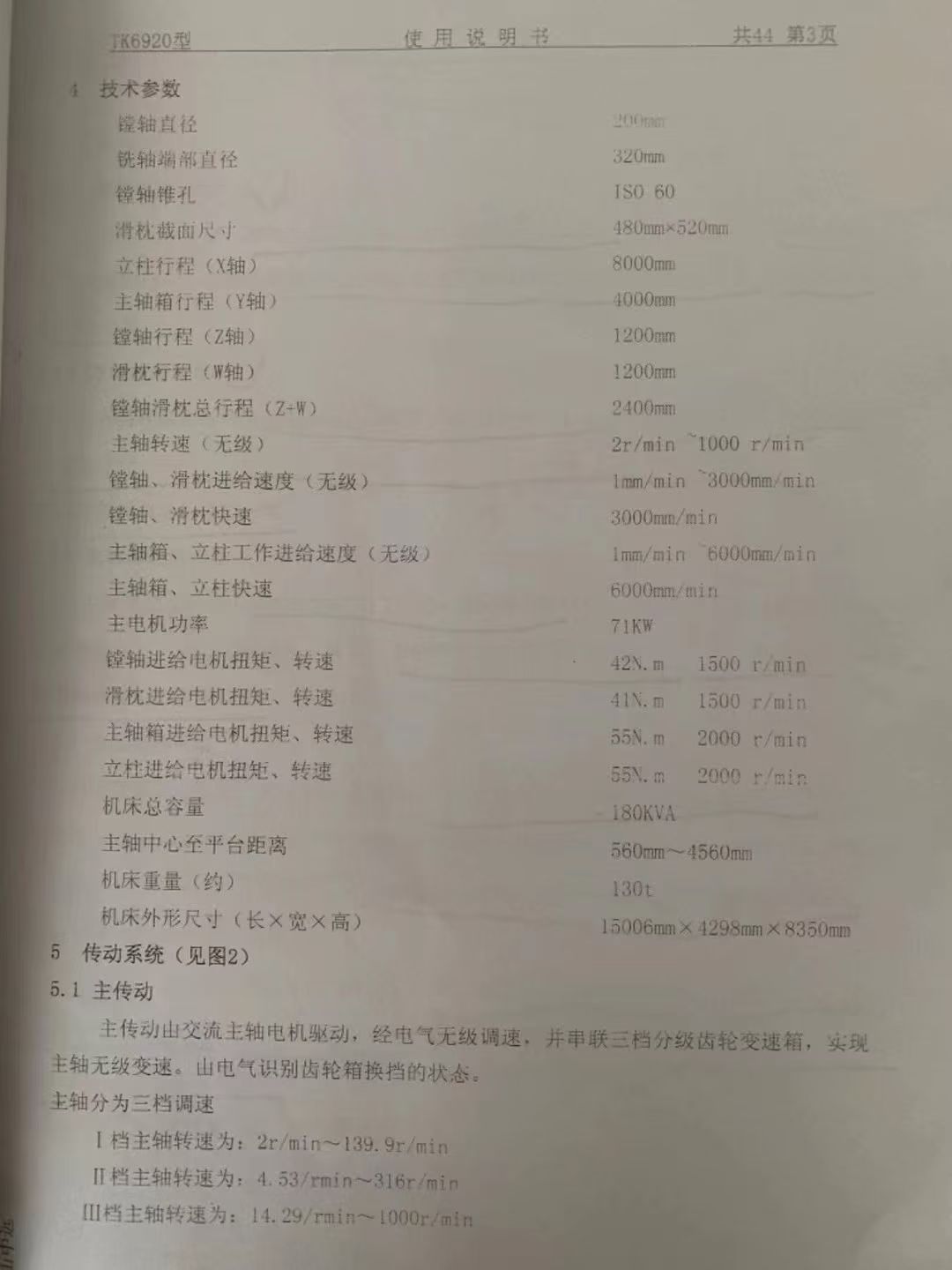镗轴进给电机扭矩、转速:50.4N.m、3000r/min