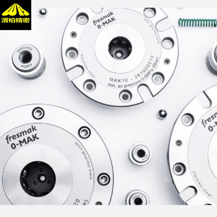 FRESMAK零点定位系统,是一个单独的定位和锁紧装置,能保持工件从一个工位到另一个工位,一个工序到另一个工序,或一台机床到另一台机床,零点始终保持不变。这样可以节省重新找正零点的辅助时间,保证工作的连续性,提高工作效率。零点快换设计原理是基于一面两销的过定位原理。其优势是把高精度定位和可靠夹紧高效集成。简单地说,就是工序与工序之间,机床与机床之间建立一个标准的接口。它可使工件在生产线上一次装卡完成后,再进行多工序加工,而无需再考虑其定位问题。