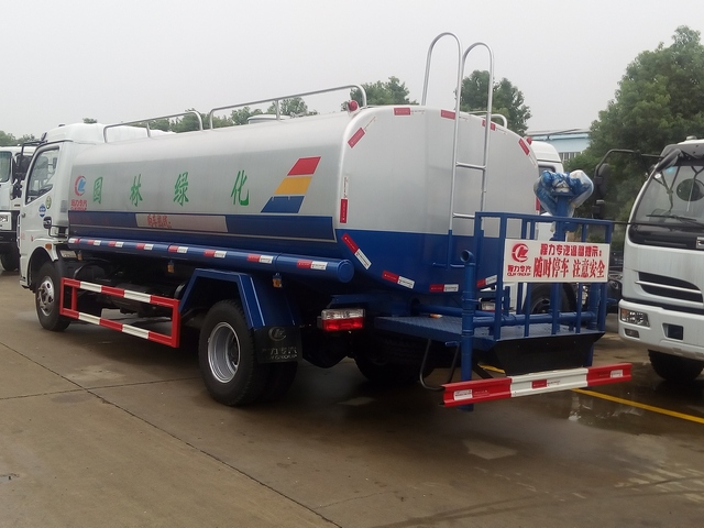 10吨洒水车功能有前冲后洒、侧喷、罐体后带工作平台,平台上安装绿化洒水炮,洒水炮可全方位旋转,炮头可调节成直冲状、大雨、小雨、毛毛雨,平台四周安装安全护栏。配备的洒水泵有杭州威龙洒水泵、随州亿丰洒水泵等,泵均可自吸自排,泵进水口处安装有过滤网。其主要起到花草树木灌溉浇水、街道道路路面冲洗、工地矿场喷洒降尘等作用。