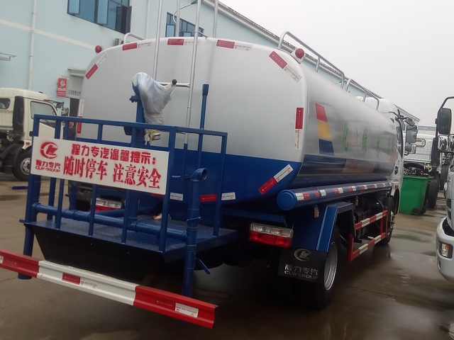 标准配置洒水车主要装备有:前冲(冲洗公路路面)、后洒(公路路面养护)、侧喷、高位侧花洒(路边绿化带优化);后工作平台高压水炮,可调节成柱状,射程≥28m;也可调节成雾状,射程≥30米,水泵自吸高度:≤7m,洒水宽度:≥15m。侧防护网,自流阀,消防接头。洒水车水泵为常压水泵,功能可以抽水、排水。另外根据用户要求,可加消防泵、喷雾机、农药卷盘、农药柱塞泵。罐内可以做防腐防锈、电磁阀气动阀自动放水等先进设施,以满足不同用户需求