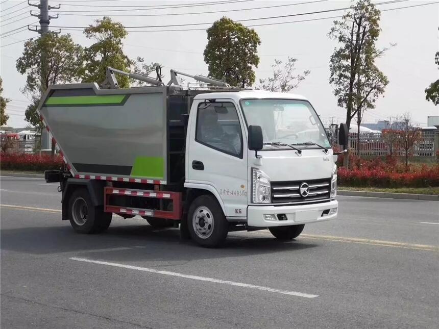压缩式垃圾车专用部分由垃圾厢、污水箱、填装器、刮板、推铲、多路换向阀、液压系统、挂桶装置等组成。厢体材料为优质炭钢,厚度为5mm,装料机构由支架、连杆机构、凸轮、挂钩等组成,在油缸作用下,将垃圾桶内的垃圾自动翻转倒入料斗。挂桶式压缩垃圾车出售5方压缩垃圾车专用汽车之都。