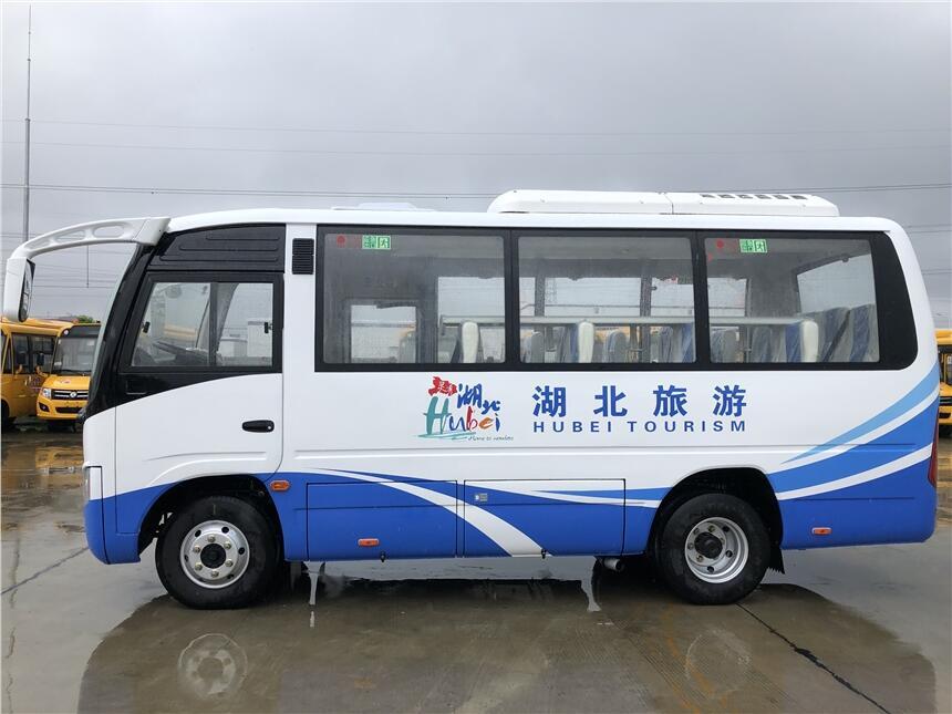 东风客车19座客车车辆型号DFA6600K5A【营运版标准配置】方向助力、离合助力、断气刹车、限速器、5档变数器、德纳车桥、前盘后盘制动器、车身稳定系统ESC(含ABS),干燥器、自动调整臂、发动机预热、胎压监测系统、制动衬片摩擦报警,发动机仓自动灭火装置;普通聚氨脂油漆,海绵座椅(全车安全带)、竹地板铺革,司机风扇、遮阳帘,电子钟,MP3收音机,点烟器,影视安装埋板及预留电源线,车载视频监控系统,高位刹车灯;全粘贴内藏推拉式侧窗,应急窗自动破玻装置,1个带换气风扇天窗,导雨槽,气动折叠门,铁花纹踏板;车内左侧内行李架、右侧顶扶手;标准后行李仓、侧行李仓。