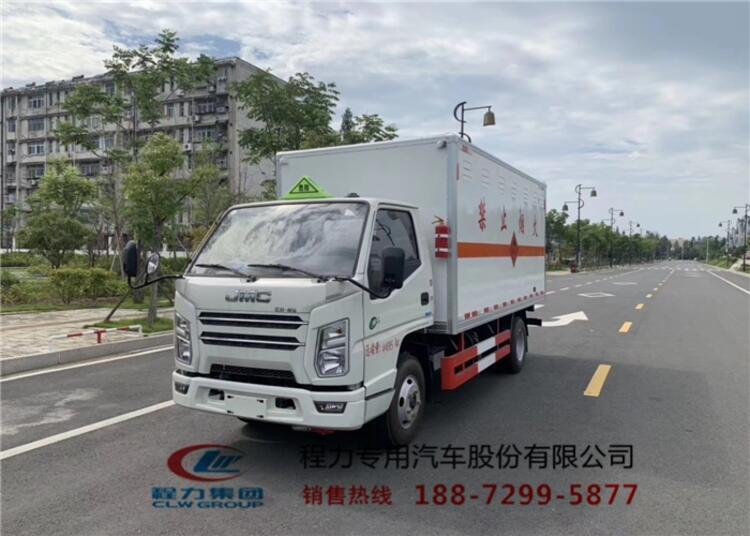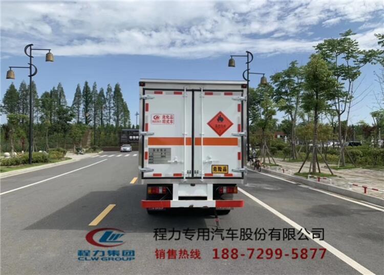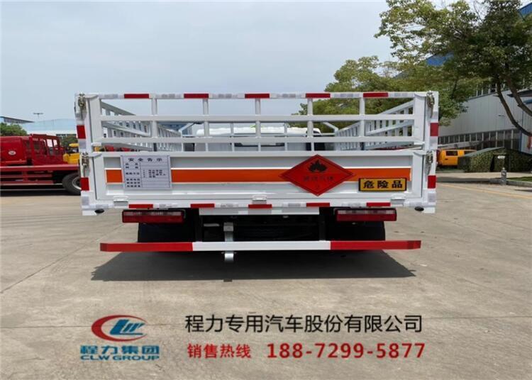 厢体配置:严格按照公告尺寸制作,外板采用1mm厚冷轧板有一次性成型的百叶窗,内饰为导电性能良好的铝板有透气孔,内衬为矩形管骨架牢靠稳定,内部填充为透气防潮阻燃的挤塑板,四种材料经现代工艺复合而成,厢体外部上下铝合金型材包边,底板和车厢前下部铺橡胶皮,后门双开,右侧中部单开门,车辆外部有静电带、灭火器、防火罩,车厢内安装烟雾报警器和门防盗报警器,严格按照危险品相关法规张贴。