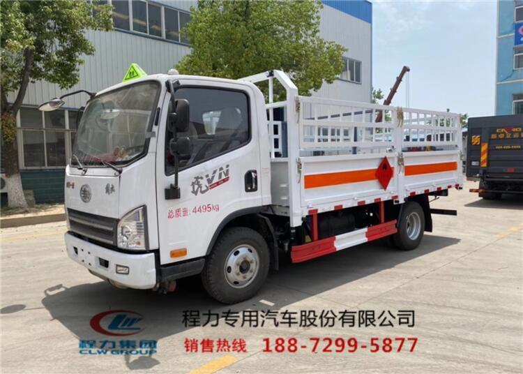 上装配置:厢体采用顶部开启仓栅式厢式车结构,外饰冷轧钢板,厢体两侧分为两段活动式结构可左右翻转,顶部高栏左右开启,后部设置左右对开门。该车厢整体厢体高1300mm适用于各种气罐、气瓶直立运输,煤气罐两层运输。底板采用3mm厚优质碳钢防滑板,底板边缘间断式焊接固定卧环,方便固定捆绑气瓶,操作方便。底板横梁采用2mm优质碳钢折弯而成,为避免地板变形焊接间距不大于350mm。