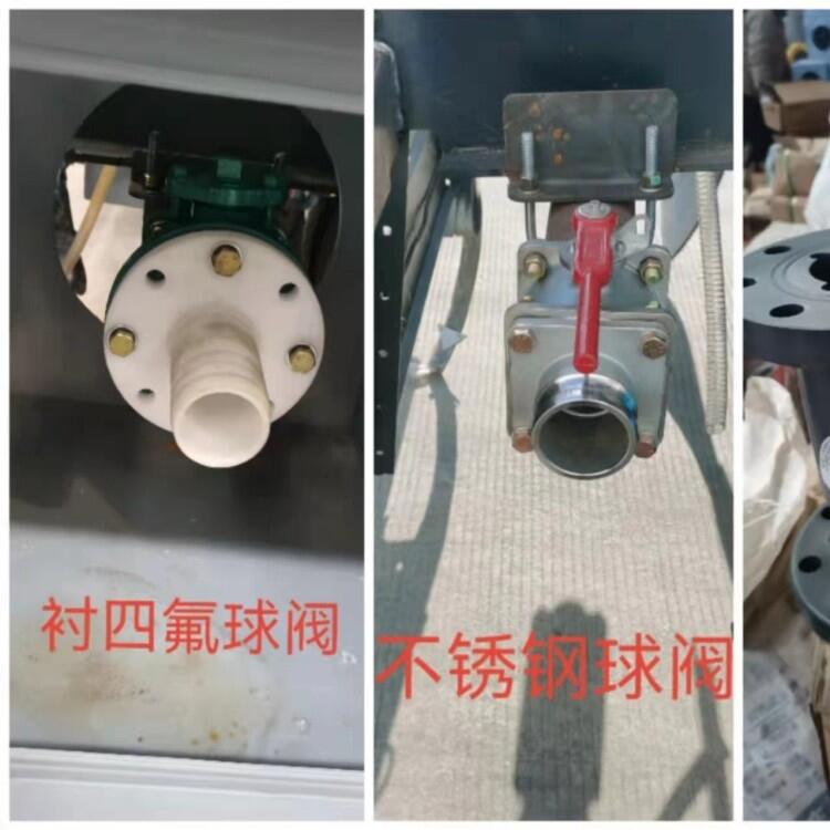 ,在罐体后尾部大梁下左右自流合一个DN80不锈钢304球阀带出口,出口带塑料保护箱,罐体