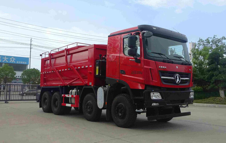 其它 货厢内尺寸长度不含后部尾锥的长度,该车由车厢、举升、输送机构等组成,主要用于配合油田压裂作业时输送压裂支撑剂;顶部封闭,后部不可整体开启;仅采用1950+2850+1350(mm)轴距,选装车厢型式及尾部出砂口样式,随底盘选装同系列驾驶室及后处理器外观;侧、后防护装置材质均为:Q235B,连接方式均为螺栓连接,后部防护装置断面尺寸(高×宽)(mm)为150×80,后部防护离地高度:480mm.安装具有卫星定位功能的行驶记录仪.ABS系统型号/生产厂家:CM4XL-4S/4M/广州瑞立科密汽车电子股份有限公司,ABS-E/威伯科汽车控制系统(中国)有限公司;该车型可选装ETC车载装置;