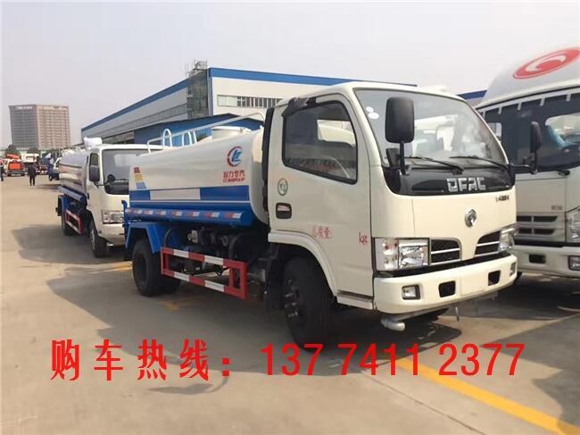 洒水车罐体材质为Q235国标碳钢,厚度为4MM,带大功率专用洒水泵,前冲、侧喷、后洒,带后工作平台和洒水高炮,高位花洒。
