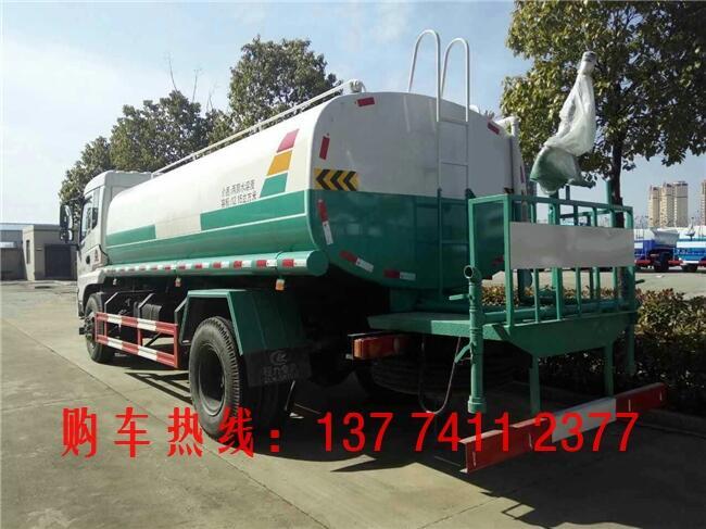 洒水车罐体材质为Q235国标碳钢,厚度为4MM,带大功率专用洒水泵,前冲、侧喷、后洒,带后工作平台和洒水高炮,高位花洒。